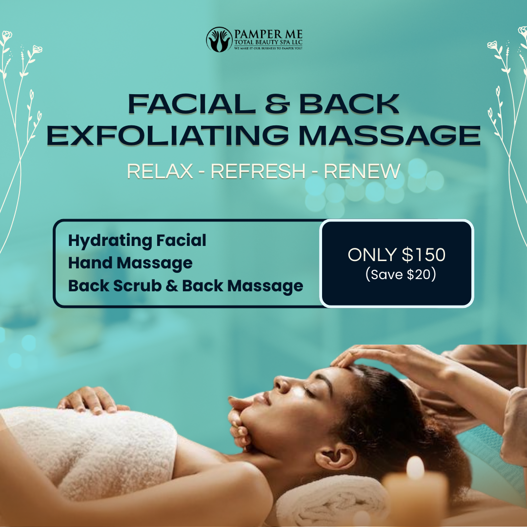 Schedule a Relaxing Spa experience with our Back Exfoliating and Hydrating Massage plus a Youthful Glow Facial!